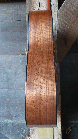 Deze gitaar is gebaseerd op het dreadnought model die Martin bouwde voor de Ditson music stores in Boston in de jaren 20. Het model is zeker voor die tijd erg groot en lijkt eigenlijk op de latere gibson jumbos. Opvallend is de open kop en hals body verbinding bij de 12e fret waardoor het zadel wat lager komt te zitten. Deze gitaar heb ik gebouwd met een 50 jaar oud sparren (alpen fijnspar) bovenblad. Achter-en zijkanten zijn van frans notenhout ook circa 50 jaar oud. Hals en kop zijn van honduras mahonie met op de kop noten fineer en ebben toets. Binding en rosette zijn van zwart ebben en rood pernambuco. Open waverly tuners met ebben knoppen. Gehele gitaar nitrocellulose gelakt.